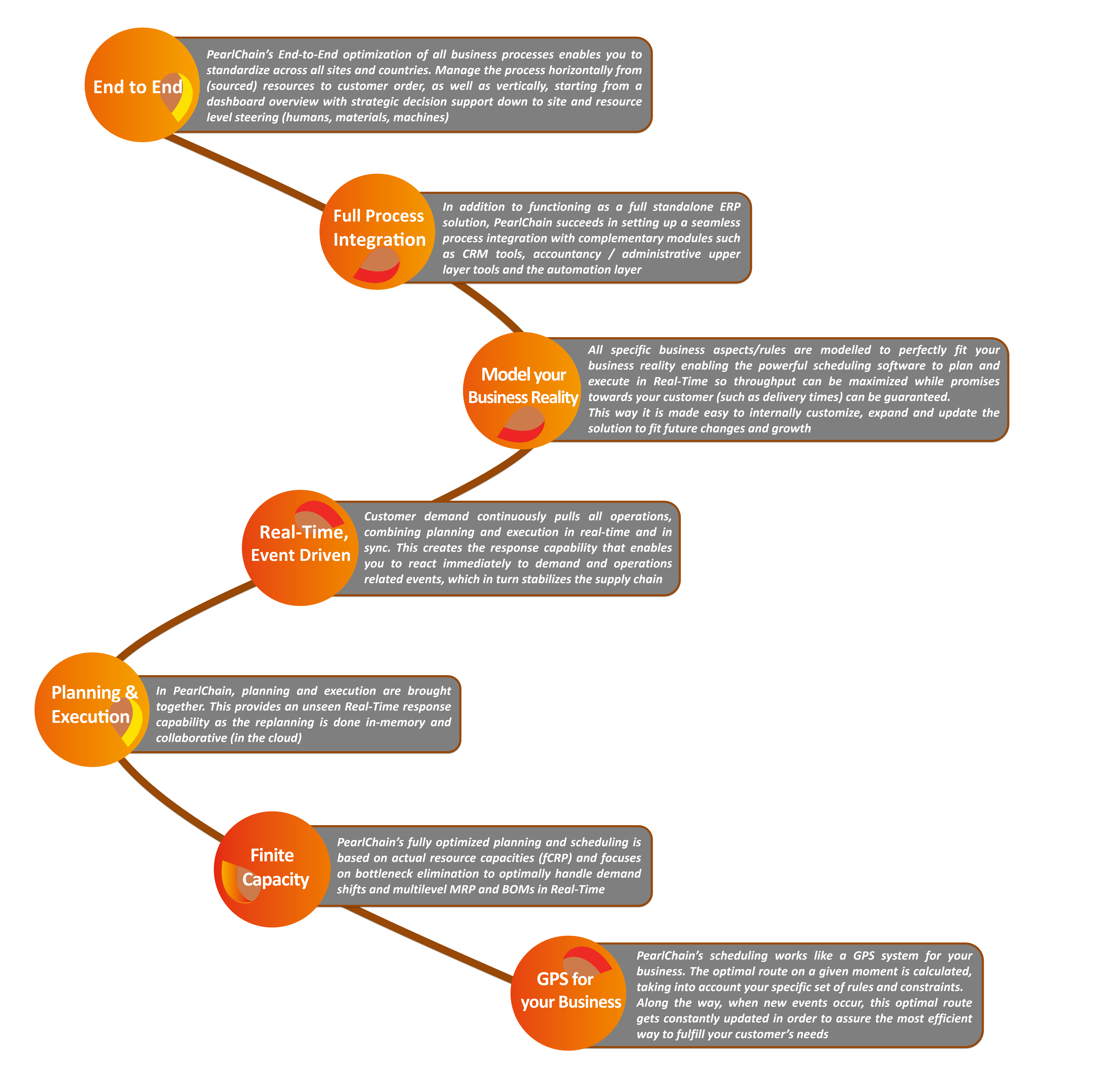 PearlChain is the only software company with a solution where planning and execution are brought together in real-time. This unique approach establishes a transparent end-to-end value chain with operational integration visibility and an unseen response capability, which in turn stabilizes the supply chain. .